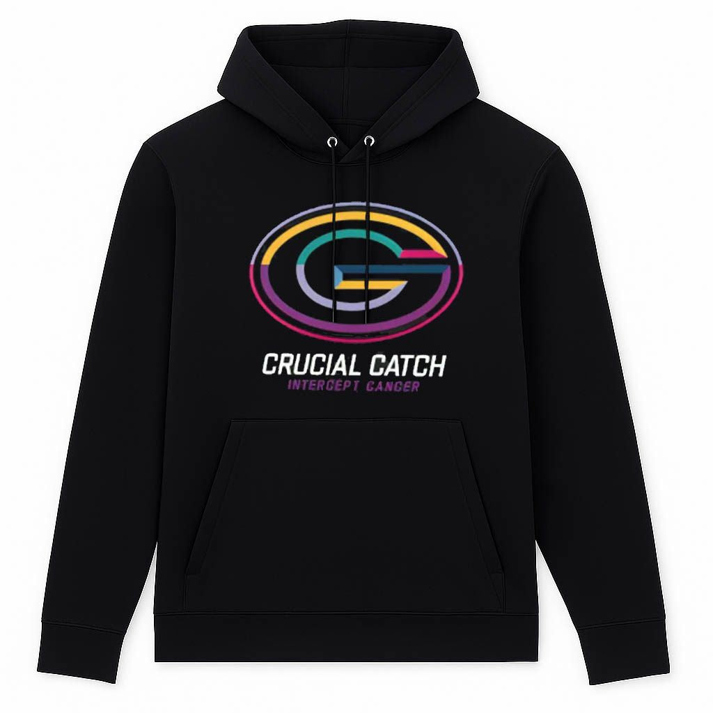 Stand with your team and a powerful cause in the Packers Crucial Catch 2025 Hoodie. This hoodie showcases the iconic Green Bay Packers “G” logo highlighted with vibrant rainbow-inspired stripes, symbolizing the fight against multiple types of cancer. The bold graphic is paired with the inspiring message, “Crucial Catch: Intercept Cancer”, reminding fans of the importance of awareness, action, and hope. Designed in sleek black for a versatile and modern look, this hoodie is more than just game-day apparel—it’s a statement of unity and resilience.